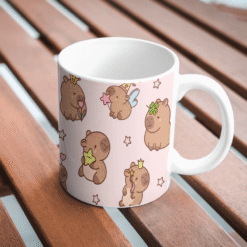 Com design super fofo de várias capivaras em diferentes situações — tomando banho, relaxando ou apenas sendo capivaras — essa caneca é puro carinho.